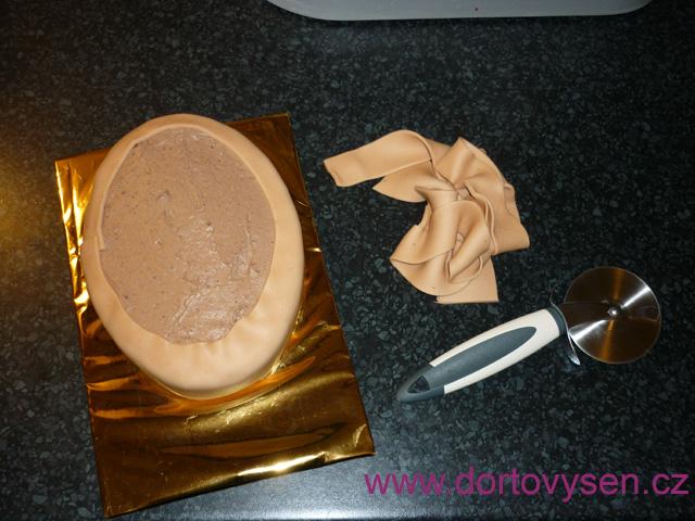 Vychlazený spodní díl jsem potáhla pruhem hmoty a zahrnula okraj nahoru