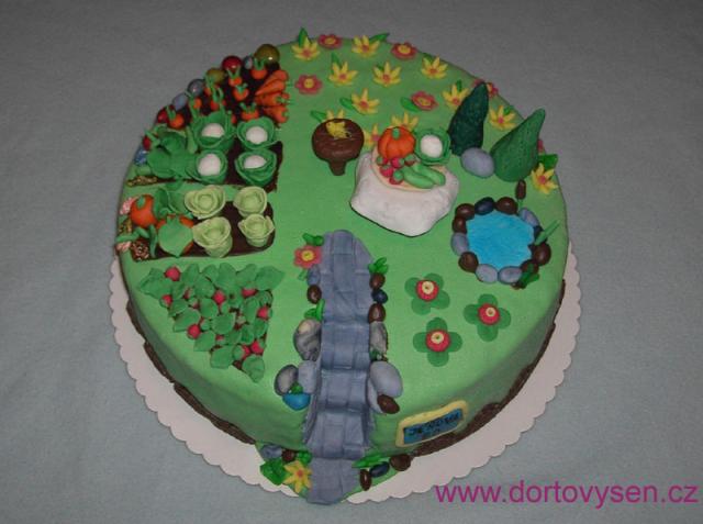 Mramorovaný korpus, vanilkový krém z pudinku a másla s přídavkem vaječného likéru, proloženo mraženými krkonošskými borůvkami. Potaženo hmotou z bonbonů marshmellow se sušeným mlékem a čokoládou. Ozdoby z belgické fondánové hmoty White icing a ještě čokoládové kamínky. Ozdoby lepeny čokoládovou polevou.