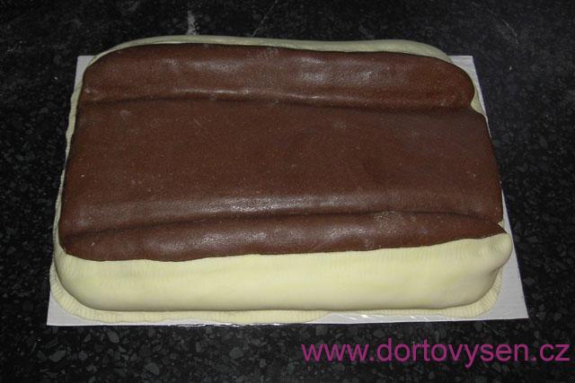 Okraje dortu jsem potáhla hmotou white icing, obarvenou na světle žluto.