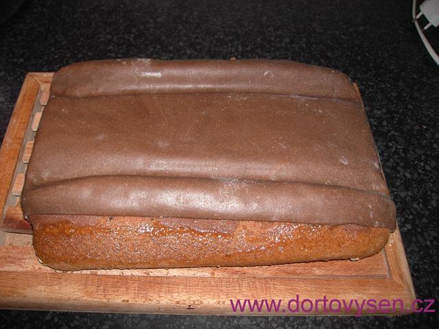 Dráhu se žlábky a zvýšenými mantinely jsem dotvarovala punčovinou, což jsem zapomněla vyfotit. Poté jsem dráhu potáhla hmotou z marhmellow