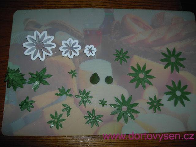 Na pohledu shora je vidět jak vypadají připravené kytičky - každá má uspostřed otvor. Čím větší kytička, tím větší otvor a čím menší, tím i menší dírka. Od každé velikosti je dobré si připravit tak dvě kytičky. Když se roztrhne nebo část oddělí, nevadí, na stromek se dají přidělat i po kouscích