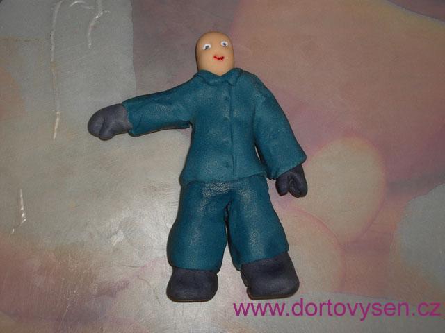 Vestičku jsem zahladila, přidala dva malé trojúhelníčky jako límec (já totiž vůbec nevím, jak vypadá uniforma hasiče :-)) a naznačila zapínání. No a figurka je oblečená, ale ještě to není hasič....