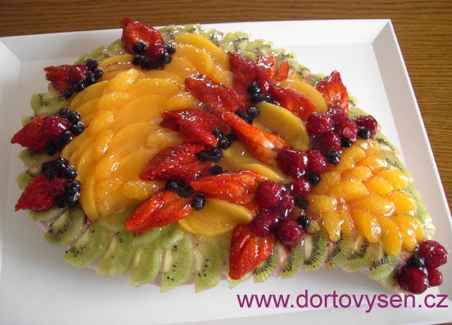 Hotový dort. Přelití želatinou jej zpevní, ovoce se pak krásně leskne a neosychá.