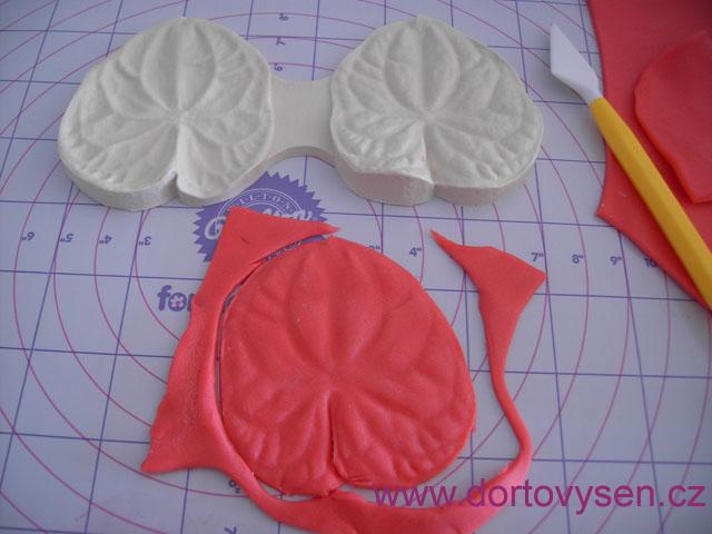 Ostrým nožem odřízneme kraje hmoty a květ začistíme.