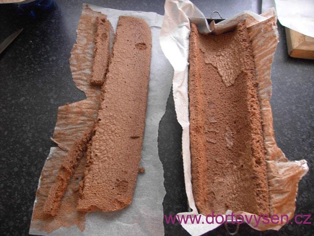 Nejprve jsem si upekla menší nízký plát těsta. Podle formy na srnčí hřbet jsem si naměřila velikost oblouku a odřízla zbytek. Plát i s pečicím papírem jsem vložila do formy na srnčí hřbet a zbytek odložila na později.
