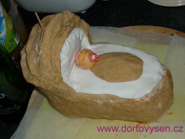 No a zde už je domodelovaný tvar kočárku. Dotvarováno punčovinou a začínám potahovat a připravovat miminko.