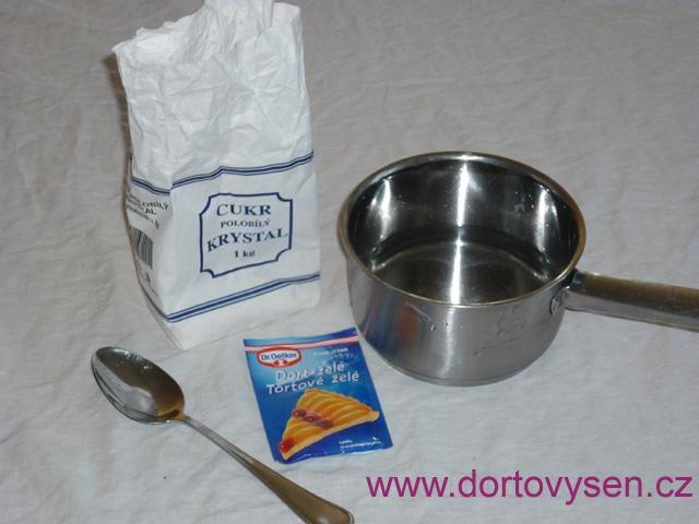 Připravíme si želatinu. Já jsem si oblíbila toto dortové želé, ale můžete použít samozřejmě takovou, kterou máte oblíbenou. Dá se uvařit z vody nebo i z kompotové šťávy, pokud jste do dortu použili například kompotované brokve nebo mandarinky. Želatinu připravte podle návodu na obalu. Některá se nesmí vařit, jiná naopak musí.