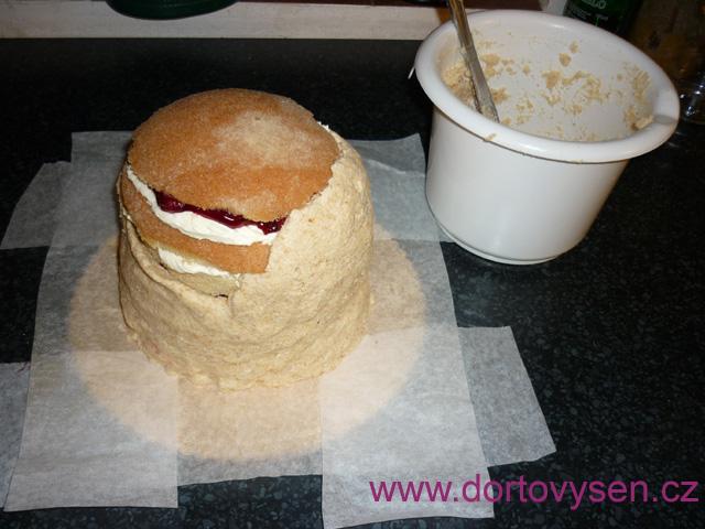 Punčovinu jsem si udělala měkčí z krému, který byl v dortu, abych tak zachovala stejnou chuť a celý poskládaný tvar jsem jí obalila.