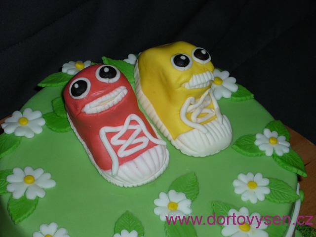 Kakaový korpus, kivi frutafill, jogurtová šlehačka, české čerstvé jahody. Kecky jsou z mléčného marcipánu potažené a zdobené fondánem K2, stejně jako celý dort