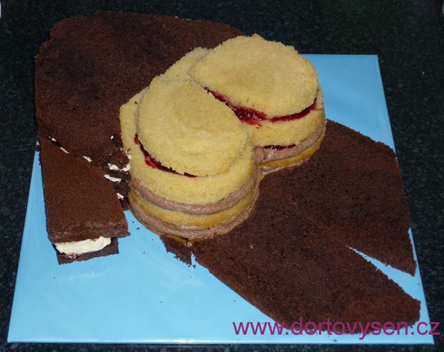 Na nohy jsem také přiložila plát korpusu, ale po přiložení jsem z něho vykrojila klín, aby bylo nakonec vidět, že jsou to dvě nohavice. Kde mi korpus přesně neseděl, přidala jsem prostě kousky korpusu a přilepila je borůvkovým gelem.