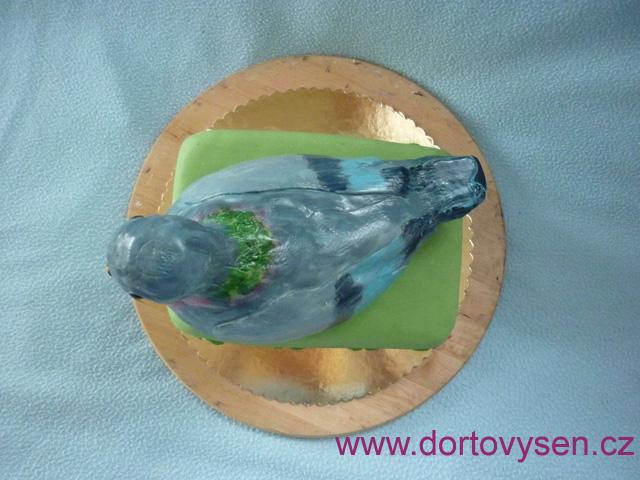 Špičky křídel a ocasní pera jsou z dortových oplatek slepených čokoládou a potažených fondánem