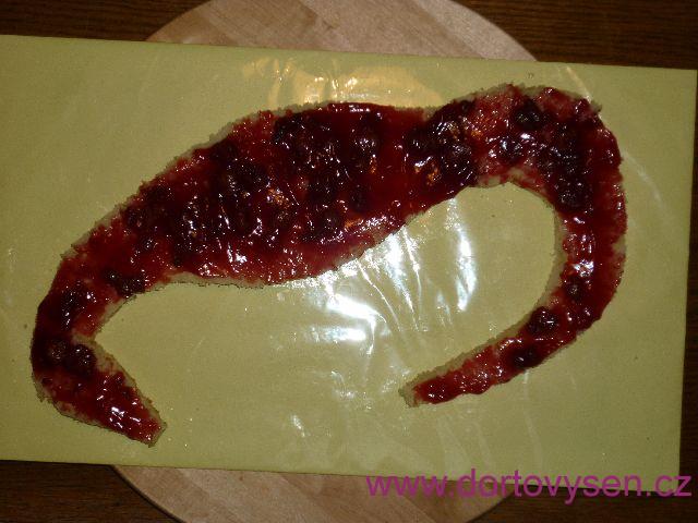 Nejprve vyřezaný obrys těla ze tří částí, složený a pomazaný višňovým gelem