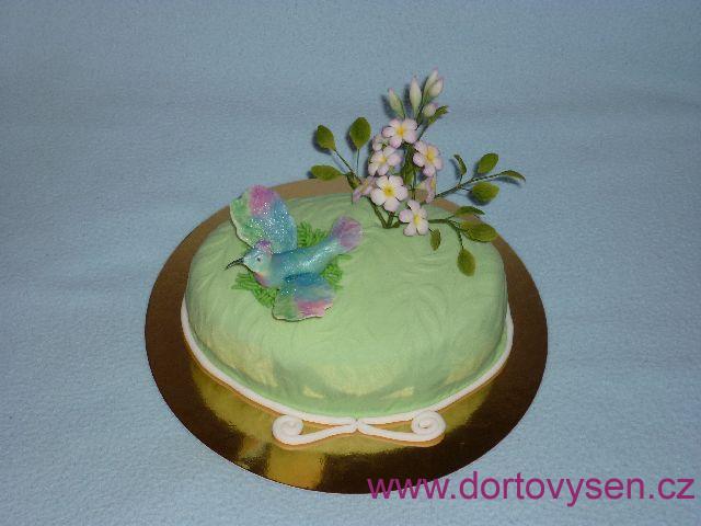 Vanilkový korpus, meruňkový frutafill, šlehačka v chuti broskvový jogurt, maďarský fondán Smarftflex Velvet, kvítky na drátkách jsou jedlé.