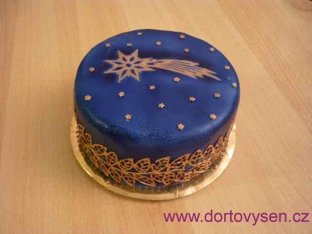 Kakaový korpus, višňový frutafill, krém ze 45% smetany s čokoládovou morelinou - neskutečně dobrý! Potaženo belgickým fondánem, stříkáno airbrushem, zdobeno jedlou krajkou, cukrovými hvězdičkami a malováno zlatou jedlou barvou.