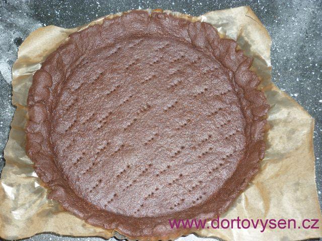 Z kakaového křehkého (lineckého) těsta jsem si upekla korpus v koláčové formě. Nechala jsem ho vychladnout.