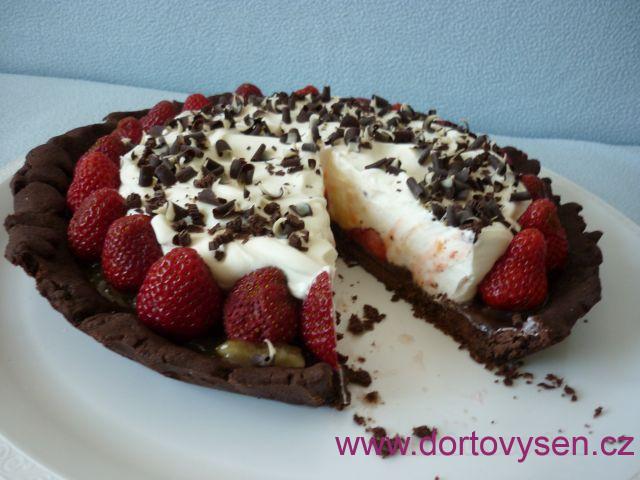 Chuť jahod, smetany a čokolády báječně podtrhne citronová marmeláda. Koláč je dokonalá lahůdka.