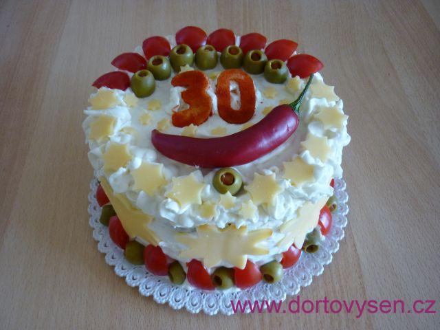 Masová sekaná, promazaná sýrovo smetanovým krémem s křenem, proložená a obložená zeleninou, sýry a olivami, dozdobeno chilli papričkou